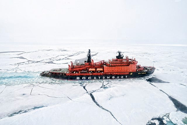 But in the frozen Arctic, civilian nuclear-powered ships already exist, eight and counting, and they have for nearly seventy years. They’re not hypothetical or experimental; they’re routine. And they’re not built in Silicon Valley, but in Russia.