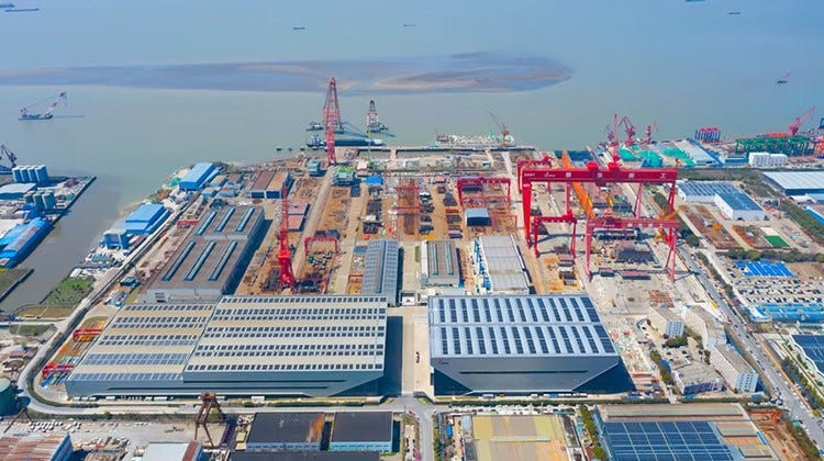 The FNPP hulls are Chinese, built by Wison Heavy Industries at its Nantong yard, selected through competitive tenders on cost and schedule grounds over Russian and South Korean alternatives. Domestic yards run simultaneously at capacity on the Project 22220 icebreaker program.