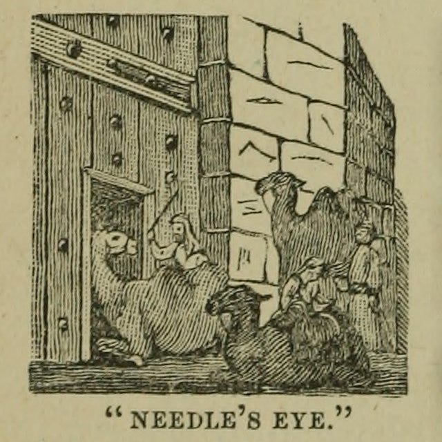 The camel and the needle image can be read in two ways.