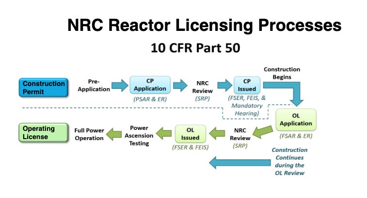 Part 52, created in the late eighties, was the institutional response to that trauma. It introduced combined construction and operating licenses and design certifications. The idea was simple, get your design certified once, get a COL that incorporates that design and a specific site, build in accordance with that license, demonstrate via inspections, tests, analyses, and acceptance criteria that you did what you promised, and you are entitled to an operating letter without another round of regulatory re-litigation.